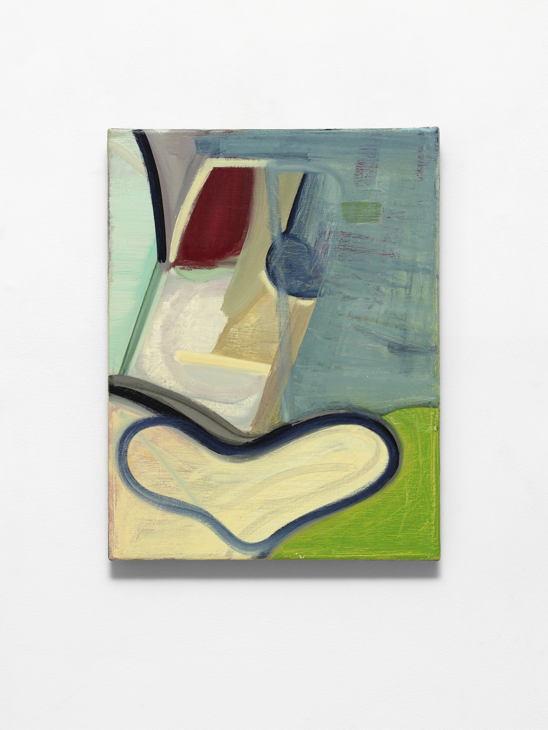 Alain Biltereyst’s paintings draw on the visual codes of public space, such as city truck designs, packaging, and architectural motifs. His work translates this utilitarian visual language into subtle abstractions where stripes, lines, shapes, and colors are arranged with rhythm and compositional balance. Exploring how the ideals of Modernism have penetrated everyday life through design and mass production, Biltereyst juxtaposes clean, precise forms with a painterly approach. Traces of earlier brushstrokes appear throughout. Here, Modernist formalism meets the messy vitality of popular culture. In Emily Hall’s words for Artforum, “as signs that don’t seem to want anything from us, these paintings offer small, fierce, cheerful—and poetic and simple—moments of resistance” (1).
